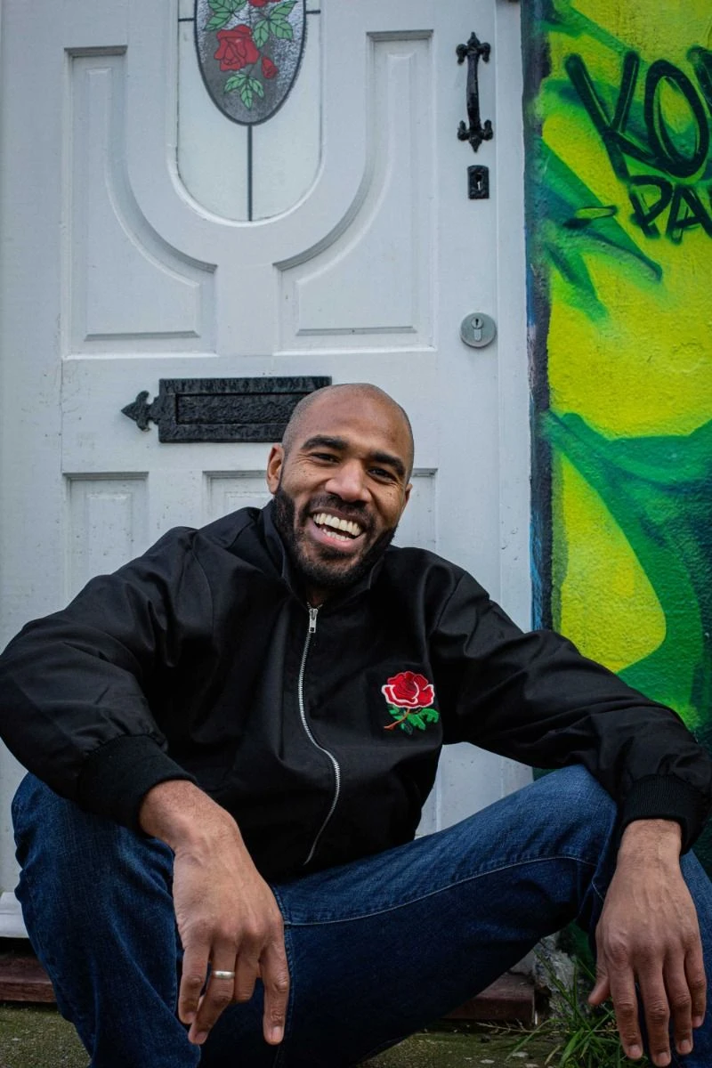 High-quality black Harrington Jacket featuring the popular rose crest from the 1980’s England Rugby jersey.
